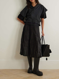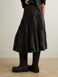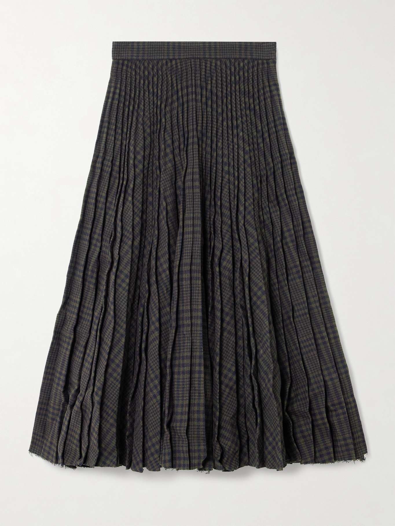 Pleated checked crinkled wool-blend midi skirt