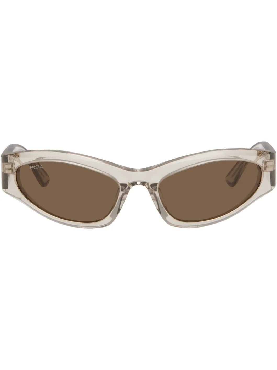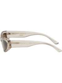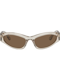 Cat-eye transparent acetate-frame sunglasses in beige. · Brown lenses · Logo etched at lens · Integrated nose pads · Logo printed at temples · Exposed core wires · Includes case · Size: 58.19 140 Supplier color: Beige Acetate. Made in Italy 252342F005007