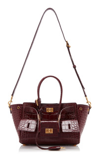 Bel Air Croc-Embossed Leather Carry-All Bag burgundy