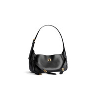 Bel Air Small Shoulder Bag in black smooth calfskin, aged-gold hardware PRODUCT DETAILS • Dimensions: L11,8 x H6,7 x W7,8 inch • Smooth calfskin • Shoulder bag • Adjustable shoulder strap (drop: 7,9 inch) • Shoulder carry • Aged-gold hardware • Removable cloche cles with two split rings • Turn lock closure and belts • Logo engraved on the closure system • 1 main compartment • 1 inner zipped pocket • Nappa lambskin bonded lining • Made in Italy Material: calfskin
