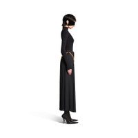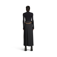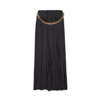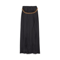Pleated Skirt in black light technical crepe PRODUCT DETAILS • Light technical crepe • Pleated • High waist • Brass chunky chain around hips • Invisible zip • Ankle length • Made in Italy Main material: 100% polyester