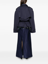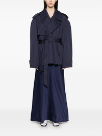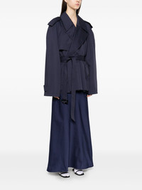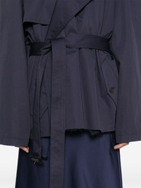 belted jacket Highlights - Navy blue - Belted cuffs - Two side button-fastening pockets - Epaulettes Made in Italy Composition Outer: Cotton 100% Lining: Wool 100%, Cupro 100%, Cotton 100% SIZE & FIT Model measurements Height 5 ft 10 in(1.78 m) Bust/Chest 33.85 in(86 cm) Hips 36.61 in(93 cm) Waist 26.77 in(68 cm) FittingInformation Designed for an oversized fit, offering additional room throughout The tie fastening gives an adaptable and personalised fit Made from a midweight non-stretch fabric Washing instructions Dry Clean Only