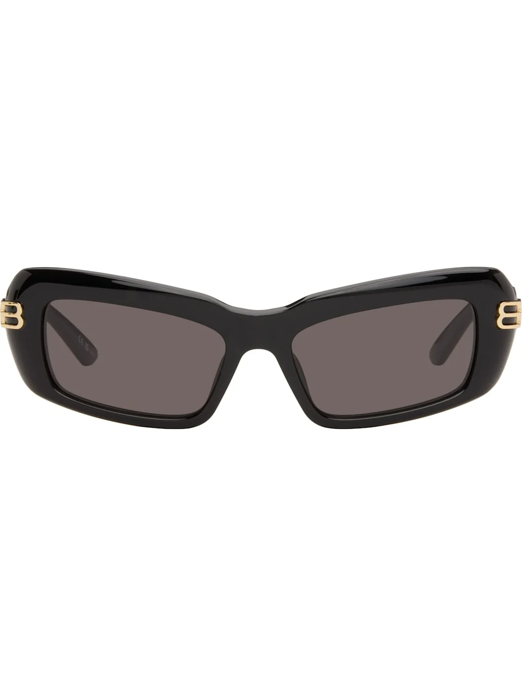 Rectangular acetate-frame sunglasses. · Gray lenses · 100% UVA/UVB protection, category 3 · Integrated nose pads · Logo hardware at temples · Includes case · Size: 57.18 140 Supplier color: Black Acetate. Made in Japan 261342F005004