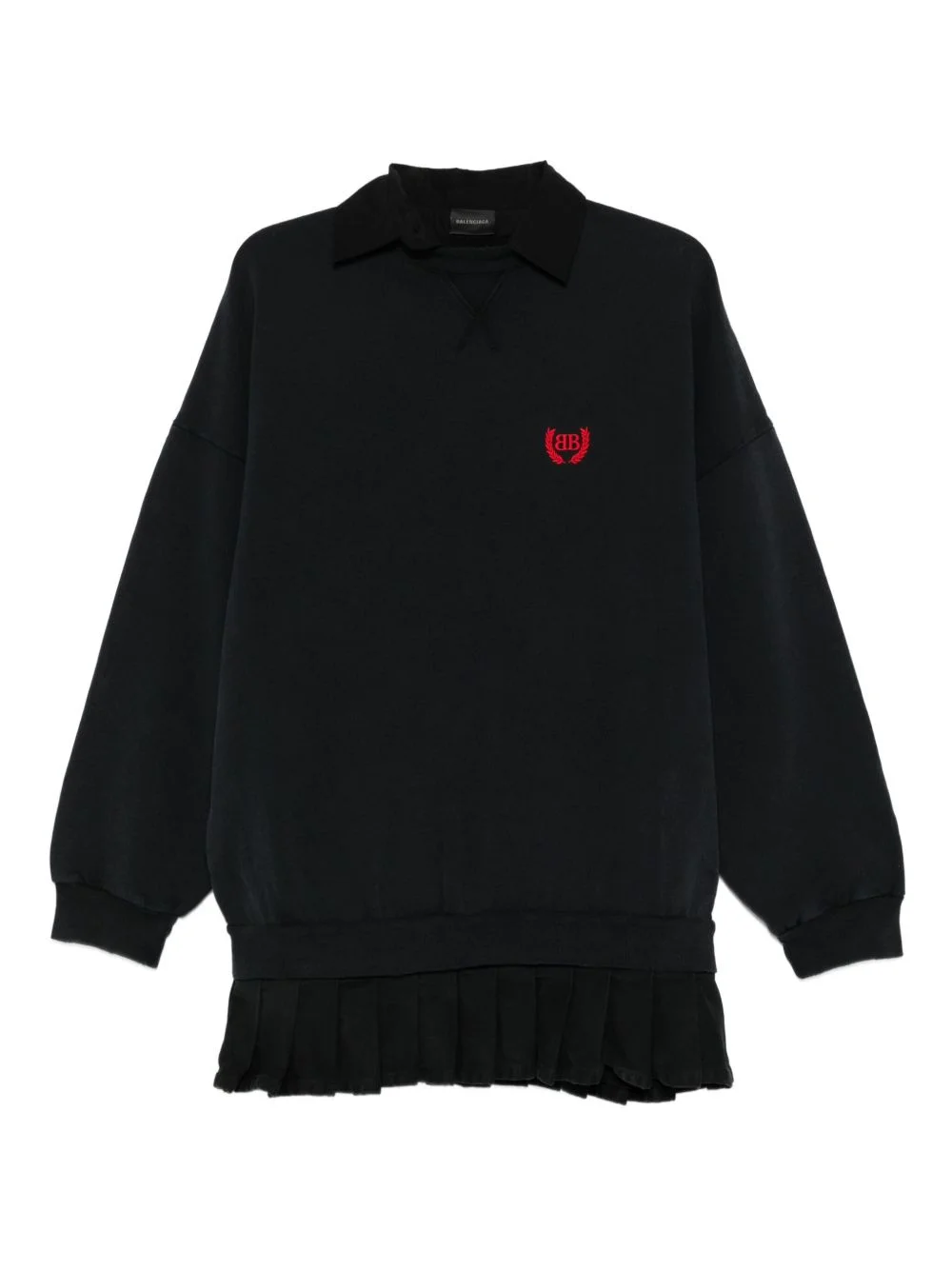 embroidered pleated mini dress Highlights - Black - Pleated hem - Embroidered logo - Polo collar - Long sleeves Imported Composition Cotton 100% SIZE & FIT Model measurements Height 5 ft 9 in(1.75 m) Bust/Chest 34.64 in(88 cm) Hips 36.61 in(93 cm) Waist 26.37 in(67 cm) Washing instructions Machine Wash