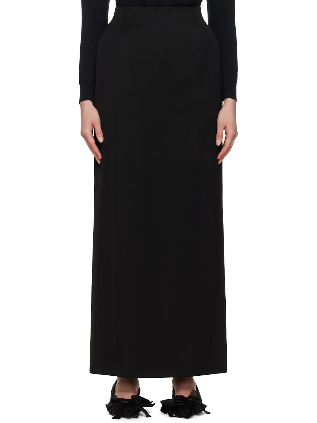 Wool gabardine maxi skirt. · Quilted silk-blend padding at side seams · Zip closure at back waistband · Vent at back hem · Full logo-woven satin lining Supplier color: Black Body: 100% wool. Fill: 60% silk, 40% polyactide. Lining: 100% cupro. Made in Italy 251342F093000