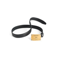 Lola Belt in black calfskin, aged-gold hardware PRODUCT DETAILS • Dimensions: Width: 1 inch • Smooth calfskin • Metal plate with Balenciaga logo engraved at front • Aged-gold hardware • 5 notches on the belt • Tone-on-tone leather loop • Made in Italy Material: calfskin, brass
