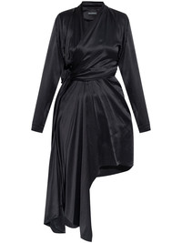 silk midi dress Highlights - Black - Silk - Satin weave - V-neck - Draped detailing - Long sleeves - Asymmetric hem - Mid-length Made in Italy Composition Silk 100%