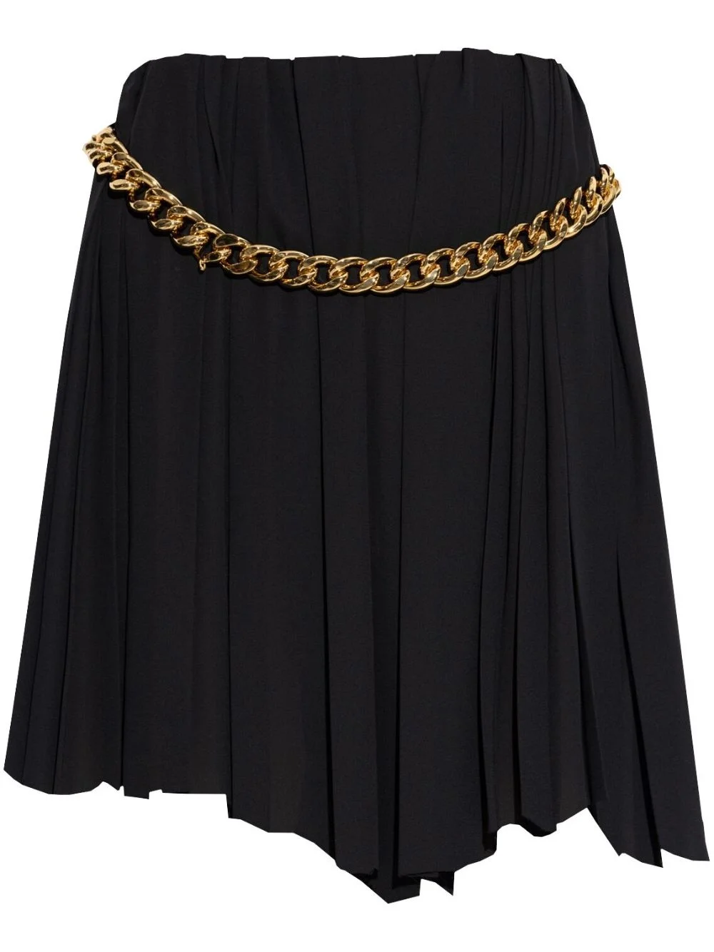 chain pleated skirt Highlights - Black - Fully pleated - Chain-link detailing - Thigh-length - Asymmetric hem Made in Italy Composition Polyester 100%