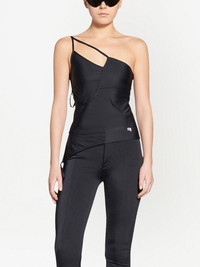asymmetric strap-detail tank top Highlights - Black - Asymmetric design - Halterneck - Drawstring hem Made in France Composition Nylon 100% SIZE & FIT Measurement LENGTH 22 in(55.9 cm) WAIST 27.99 in(71.1 cm) BUST 25.98 in(66 cm)