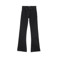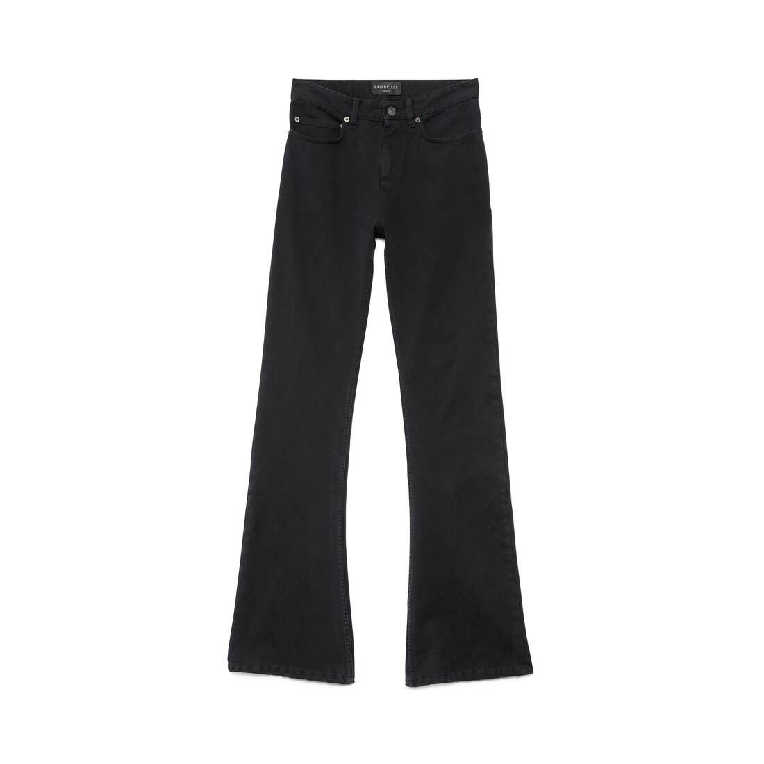 Bootcut Pants in black soft left hand denim PRODUCT DETAILS • Soft black left hand denim • This item is unisex • Bootcut fit • Mid-waist • Covered zip fly • 5 belt loops • 5 pockets • Balenciaga engraved flex buttons • Balenciaga inlaid patch at back • Made in Italy • Dry cleaning Material: 100% cotton