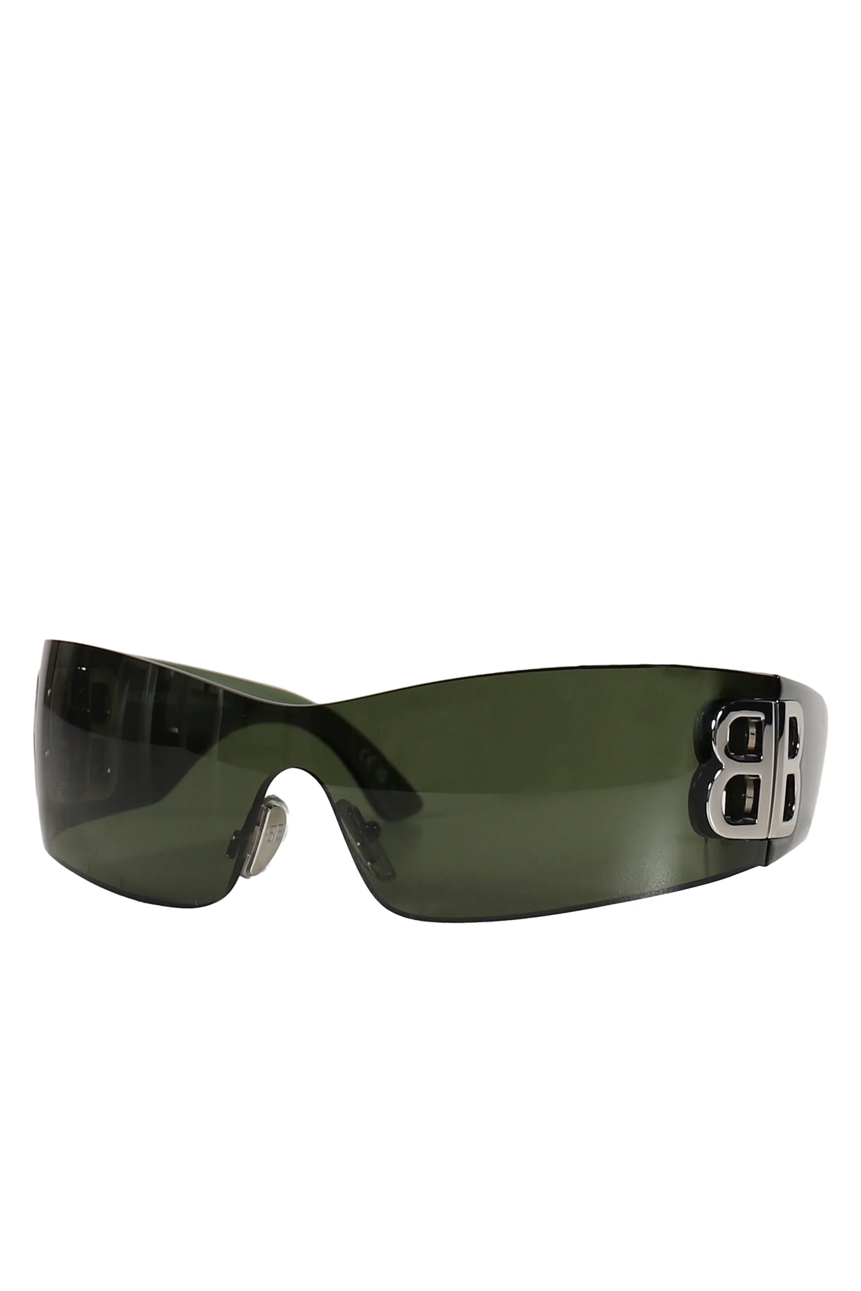 Sizing Size vertical beside Temple OS 4.5cm 14cm 11.5cm Product Detail - Gender: MEN - Designer: BALENCIAGA - Categories: SUNGLASSES BALENCIAGA eyewear - Material: ACETATE - Model Number: bb0359s-grn-sil