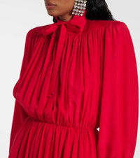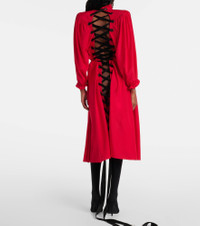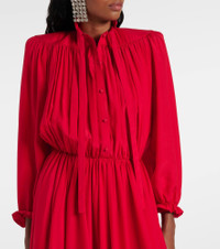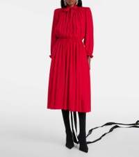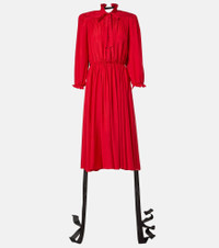 Balenciaga loves to surprise with its designs, and this bow-detail silk midi dress is no exception. Delicate frilled cuffs and pleats are paired with bold shoulder pads and a lace-up back that runs from the neckline to the hem. Product Details - Material: 100% silk - Care instructions: dry clean - Made in Italy - Designer color name: Lipstick Red - Item color: red - Closure: zip and hook fastening, partially buttoned front, self-ties - Shoulder pads - Lining: 80% polyamide, 20% elastane - Material II: 88% viscose, 12% polyester - Item number: P01033719 Size & Fit - True to size - Shoulder pad inserts - Loose fit, elasticated waist - Non-stretchy fabric - The model seen in the picture is 178cm-5'10" and wearing a size FR 36