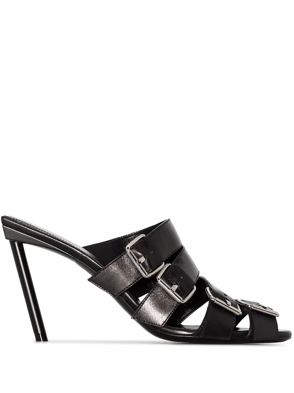 strappy buckled 80mm mules A lot of people wish they were in your shoes. And we have a feeling these strappy buckled mules from Balenciaga are entirely to blame. Putting your best foot forward won't be an issue. Made in Italy Composition Lining: Leather 100% Sole: Leather 100% Outer: Sheepskin 100% SIZE & FIT Model measurements Height 5 ft 10 in(1.79 m) Bust/Chest 31.1 in(79 cm) Hips 35.03 in(89 cm) Waist 23.62 in(60 cm) FittingInformation This piece fits true to size. We recommend you get your regular size