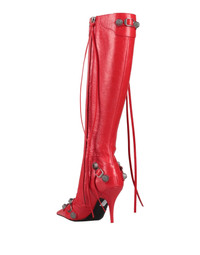 leather, varnished effect, metal applications, solid colour with appliqués, leather backing, narrow toeline, spike heel, leather sole, contains non-textile parts of animal origin, boots, small sized COMPOSITION Soft Leather MEASUREMENTS Boot length: 40.0 Boot width: 30.0 Heel height: 9.5 Product code: 17721536DP