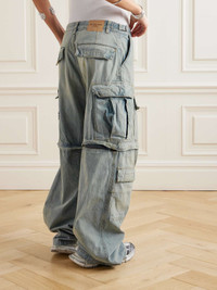 EDITORS'NOTES You can always expect amped-up proportions from Balenciaga's collections. Cut from premium Japanese denim, these jeans have an exaggerated boyfriend shape and a faded light-blue wash. They're fitted with a multitude of cargo pockets and detach at the knees to create shorts. SIZE & FIT - Fits large to size, take one size smaller than normal - Boyfriend style, designed to be worn loose and low on the hips - Adjustable tabs at the waist - Mid-weight, non-stretchy fabric - Size XS jeans have an inside leg of 32"/ 82cm - Model is 175cm/ 5'9" and is wearing a size XSmall DETAILS & CARE - Light-blue denim - Button and concealed zip fastening at front - 100% cotton - Machine wash Large to size. See Size & Fit notes.