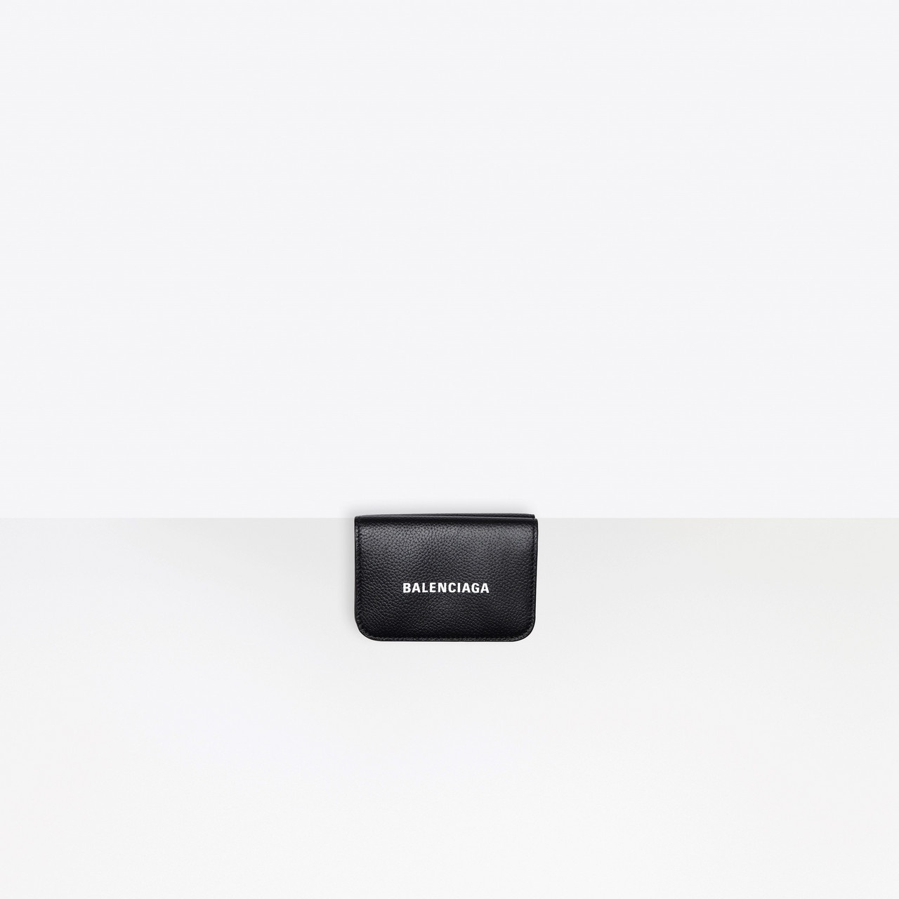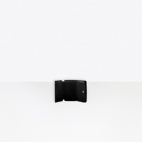 Cash Mini Wallet in black grained calfskin PRODUCT DETAILS Dimensions: W 3.7 inches H 2.7 inches D 1.6 inches Composition: 100% Calfskin - Grained calfskin - Mini wallet - Rounded edges - Front printed logo - 1 snapped bill pocket - 3 credit card slots - 1 snap coin purse - Made in Italy - Wipe with a soft cloth - The item comes with a Balenciaga dustbag and box