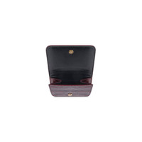 Cash Mini Wallet in dark red shiny crocodile embossed calfskin PRODUCT DETAILS • Dimensions : L2,7 x H3,7 x W1,5 inch • Shiny crocodile embossed calfskin • Front printed logo • 1 snapped bill pocket • 3 card slots • 1 snapped coin purse • Made in Italy • Wipe with a soft cloth Material: 100% calfskin