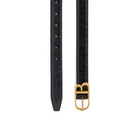 Classic B Belt in black Arena calfskin, aged-gold hardware PRODUCT DETAILS • Dimensions: Width: 1 inch • Arena calfskin • Balenciaga logo debossed tone-on-tone at end tip • Aged-gold B logo hardware • 5 notches on the belt • Tone-on-tone leather loop • Made in Italy Material: calfskin