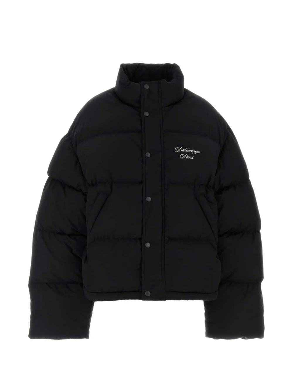 cotton blend down jacket Highlights - Black - Snap-button fastening - Logo-embroidery - Stand-up collar Imported Composition Cotton 100%, Down 100% Washing instructions Read Manufacturer Guidelines