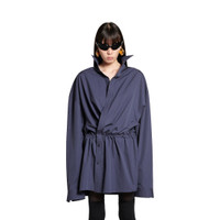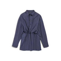 Shirt Mini Dress in faded blue washed papery poplin is from look 32 of Balenciaga Spring 25 Collection. PRODUCT DETAILS • Washed papery poplin • Over-the-knee length • Long sleeves • Asymmetric button placket • Button-down collar • Elasticated waisband, cinched silhouette • Made in Italy Main material: 100% cotton