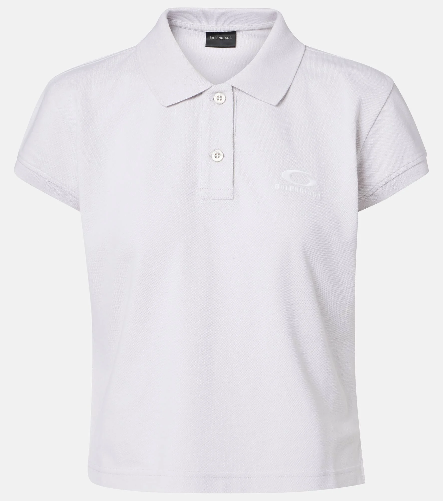 Balenciaga delivers everyday essentials suited for both casual and unexpected styling. This polo shirt is cut from cotton pique to a slightly cropped silhouette with a classic collar and a two-button closure. Product Details - Material: 100% cotton - Care instructions: machine wash at 30 degrees - Made in Portugal - Designer color name: Dirty White/White - Item color: white - Contains non-textile parts of animal origin - Collar: polo collar - Closure: partially buttoned front - Item number: P01118925 Size & Fit - True to size - Straight fit - Slightly stretchy fabric - Slightly cropped - The model seen in the picture is 178cm-5'10" and wearing a size XS