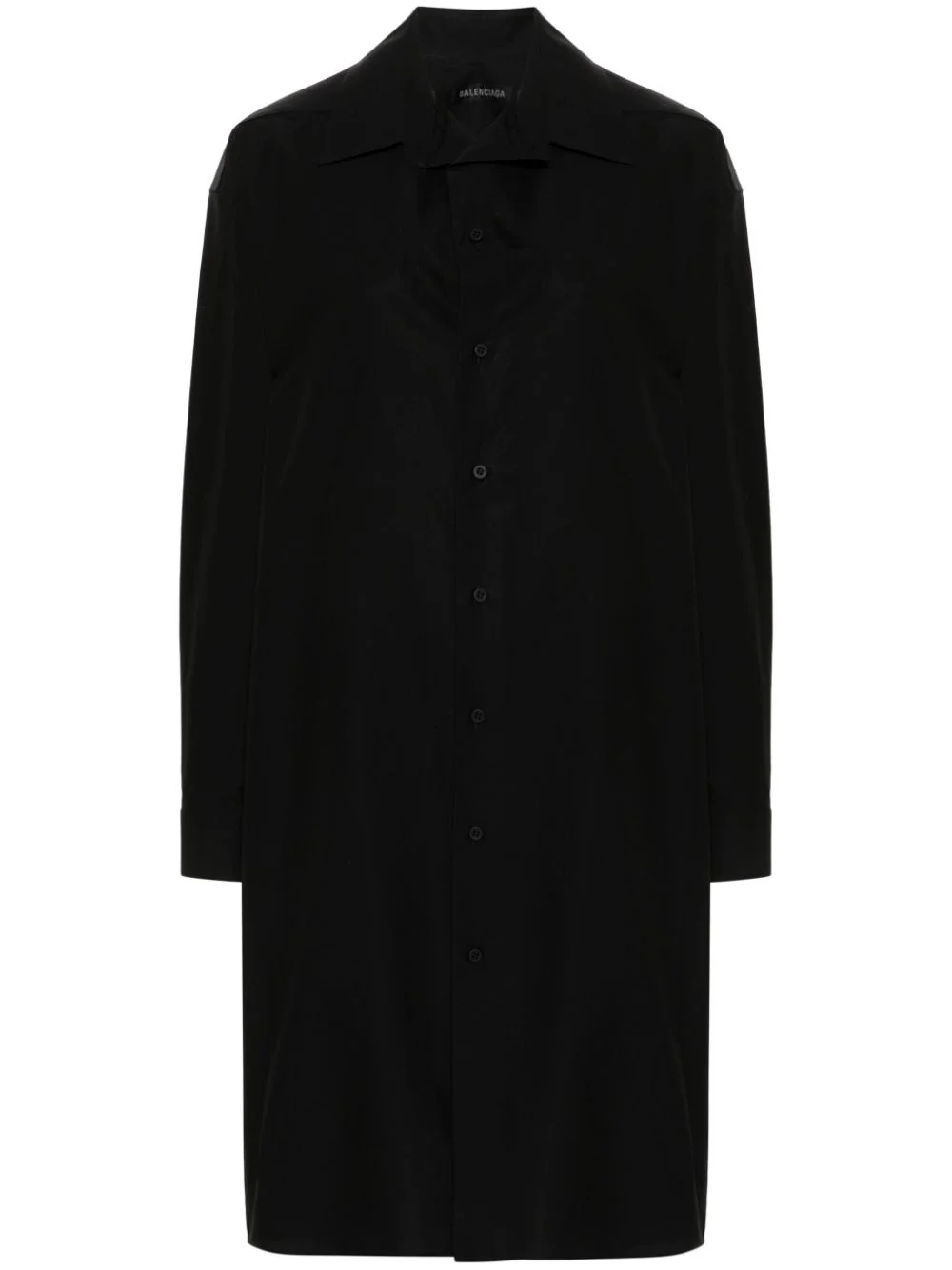 kick-collar shirt dress Balenciaga’s design ethos is rooted in the distortion of classic wardrobe staples. The result is pieces like this black shirtdress, which is cut to an exaggerated silhouette from crisp cotton poplin. Highlights - Black - Cotton - Poplin texture - Front button fastening - Kick collar - Long sleeves - Buttoned cuffs - Unlined - Straight hem - Knee-length Made in Italy Composition Cotton 100% SIZE & FIT Model measurements Height 5 ft 9 in(1.75 m) Bust/Chest 34.64 in(88 cm) Hips 36.61 in(93 cm) Waist 26.37 in(67 cm) FittingInformation Designed to be unstructured, offering a loose fit throughout Made from a midweight non-stretch fabric Measurement SLEEVE LENGTH 22.99 in(58.4 cm) HIPS 45.98 in(116.8 cm) LENGTH 39.01 in(99.1 cm) WAIST 47 in(119.4 cm) BUST 44.01 in(111.8 cm) Washing instructions Dry Clean Only