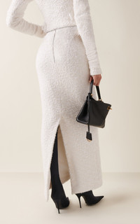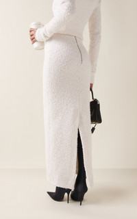 Experimental and minimalistic by design, Balenciaga is also renowned for its uncompromising standard and avant-garde creativity. With Creative Director Georgian designer Demna Gvasalia at its helm, the brand continues to live and breathe the house's inherent elegance, balanced with the designer’s edgy, urban aesthetic. Crafted from knit cotton tweed with a purposeful piled texture, this column skirt is design to sit high on the waist to accompany its matching cropped companion. PRODUCT DETAILS - Pre-Fall '24 - Zip fastening along back - Composition: cotton tweed piling knit - Dry clean - Imported SIZE & FIT - Our model is wearing a size Small - Model is 5'11" with a 31.5" bust, 23.5" waist, and 34.5" hip - Designed for a slim fit