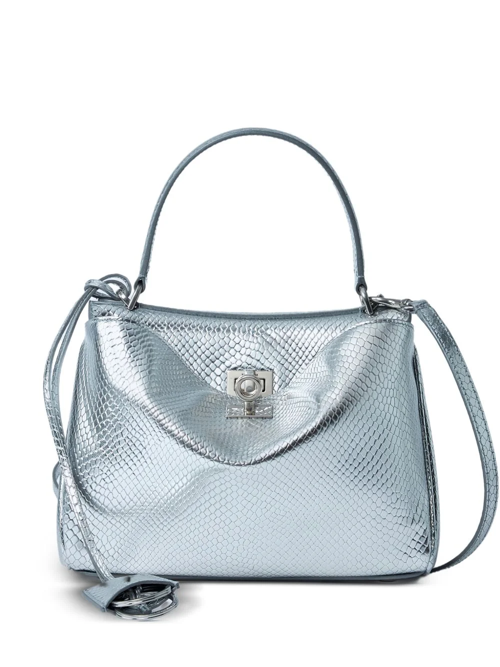 croc-embossed rodeo mini tote bag Highlights - Silver - Croc-embossed effect - Top handle - Detachable shoulder strap - Twist lock fastening - Detachable encased keyring - Rear slip pockets Made in Italy Composition Outer: Calf Leather 100% SIZE & FIT Measurement DEPTH 3.93 in(10 cm) HEIGHT 6.69 in(17 cm) WIDTH 9.05 in(23 cm) HANDLE 4.72 in(12 cm)