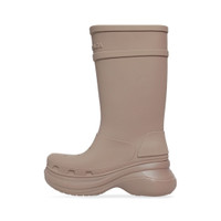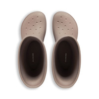 Crocs™ Boot in beige rubber PRODUCT DETAILS • Rubber • Boot • Round toe • 20mm arch • Balenciaga logo debossed at front • Embossed size at back • Made in China • Crocs™ collaboration • Wipe with a soft cloth Material: 100% EVA