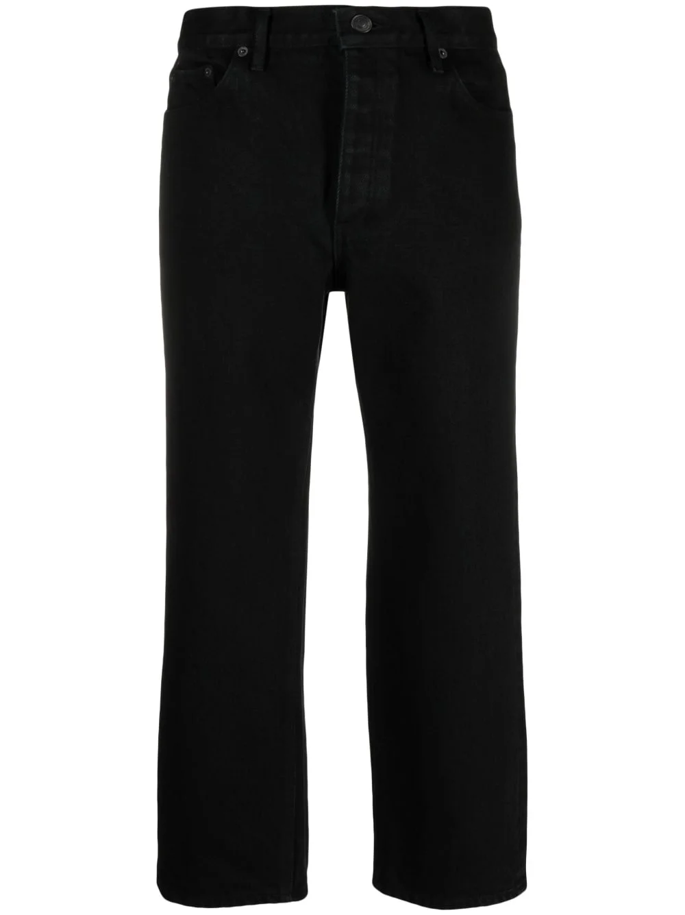cropped straight-leg jeans Balenciaga’s straight-leg jeans are an ode to minimalism. Cut to a cropped silhouette from black denim, they’re finished with matte hardware. Highlights - Black - Cotton - Logo patch to the rear - High waist - Front button and zip fastening - Classic five pockets - Straight leg Imported Composition Outer: Cotton 100% SIZE & FIT Model measurements Height 5 ft 10 in(1.78 m) Bust/Chest 29.92 in(76 cm) Hips 34.64 in(88 cm) Waist 23.62 in(60 cm) FittingInformation Designed for a straight-leg fit, these jeans allow for a close fit at the waist and an unrestricted and comfortable fit over the leg Sturdy and hard-wearing, this denim piece offers no stretch This piece fits true to size – take your usual size Washing instructions Machine Wash