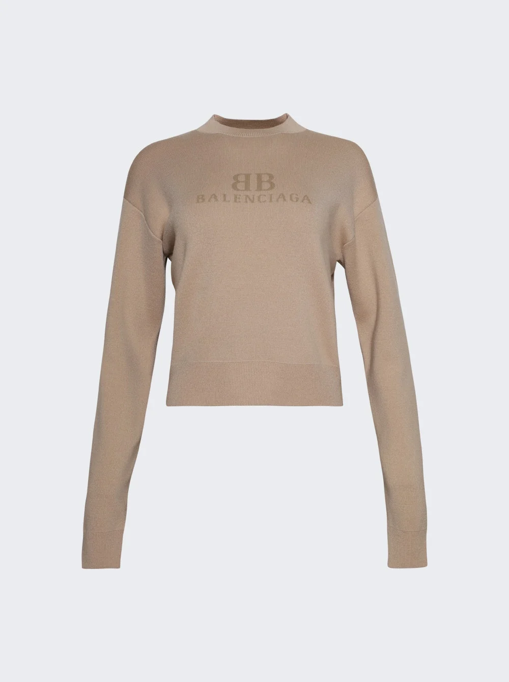 Details - Cropped silhouette - Crewneck - Long sleeves - Logo on the front - Care according to label - Material: 54% Wool, 42% Cotton, 3% Polyamide, 1% Elastane Size Information: Vendor Color Code: Brand Style: 818418 T1725 Designer/Brand: BALENCIAGA