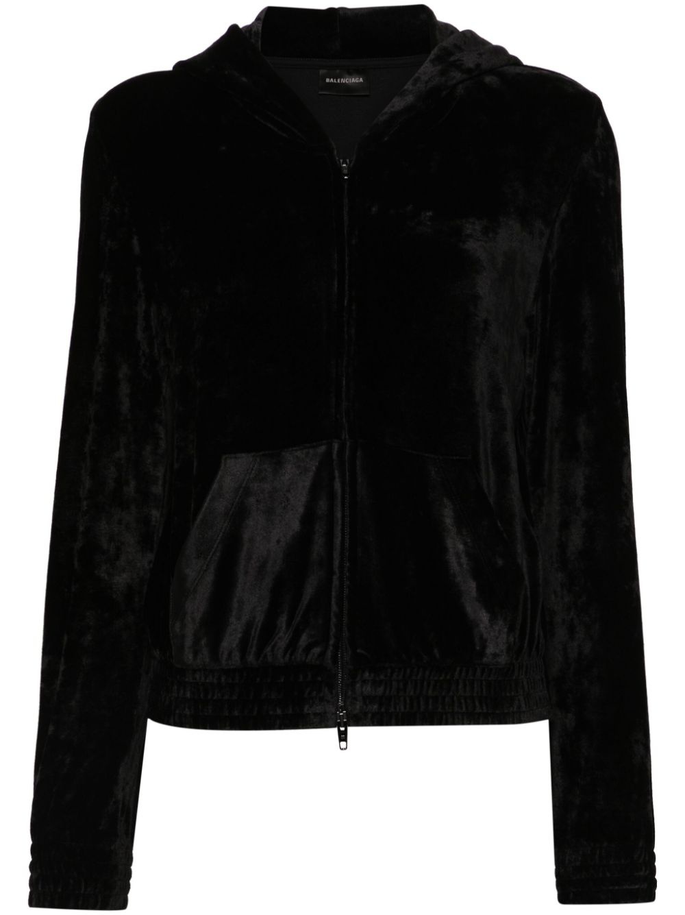 BB Paris hoodie Highlights - Black - Stretch-design - Velvet - Slouchy hood - Long sleeves - Elasticated cuffs - Two front pouch pockets - Crystal embellished bb paris logo at the back - Unlined - Elasticated waistband - Front two-way zip fastening Imported Composition Viscose 79%, Polyamide 19%, Spandex/Elastane 2% SIZE & FIT Model measurements Height 5 ft 10 in(1.77 m) Bust/Chest 32.28 in(82 cm) Hips 35.03 in(89 cm) Waist 25.19 in(64 cm) FittingInformation Designed for a relaxed fit, this piece allows for comfort and movement when worn The elasticated waist allows for a comfortable fit Made from a midweight stretch fabric, this piece offers elasticity and flexibility when worn This piece fits true to size – take your usual size Measurement SLEEVE LENGTH 22 in(55.9 cm) LENGTH 19.48 in(49.5 cm) WAIST 32 in(81.3 cm) BUST 39.01 in(99.1 cm)