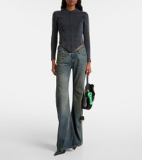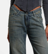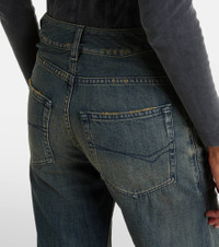 Innovation is at the heart of Balenciaga, which proudly presents its modern interpretation of fashion in every piece. These jeans are designed with a wide-leg silhouette and feature a curved, low-rise waistline. Product Details - Material: 100% cotton - Care instructions: machine wash at 30 degrees - Made in Italy - Designer color name: Navy/Green/Yellow - Item color: blue - Pocket lining: 65% polyester, 35% cotton - Closure: zipper fly, button fastening - Pockets: five pockets - Belt loops - Item number: P01092720 Size & Fit - Fits small to size - we recommend trying one size larger - Non-stretchy fabric - Wide-leg - Low-rise - The model seen in the picture is 178cm-5'10" and wearing a size 27