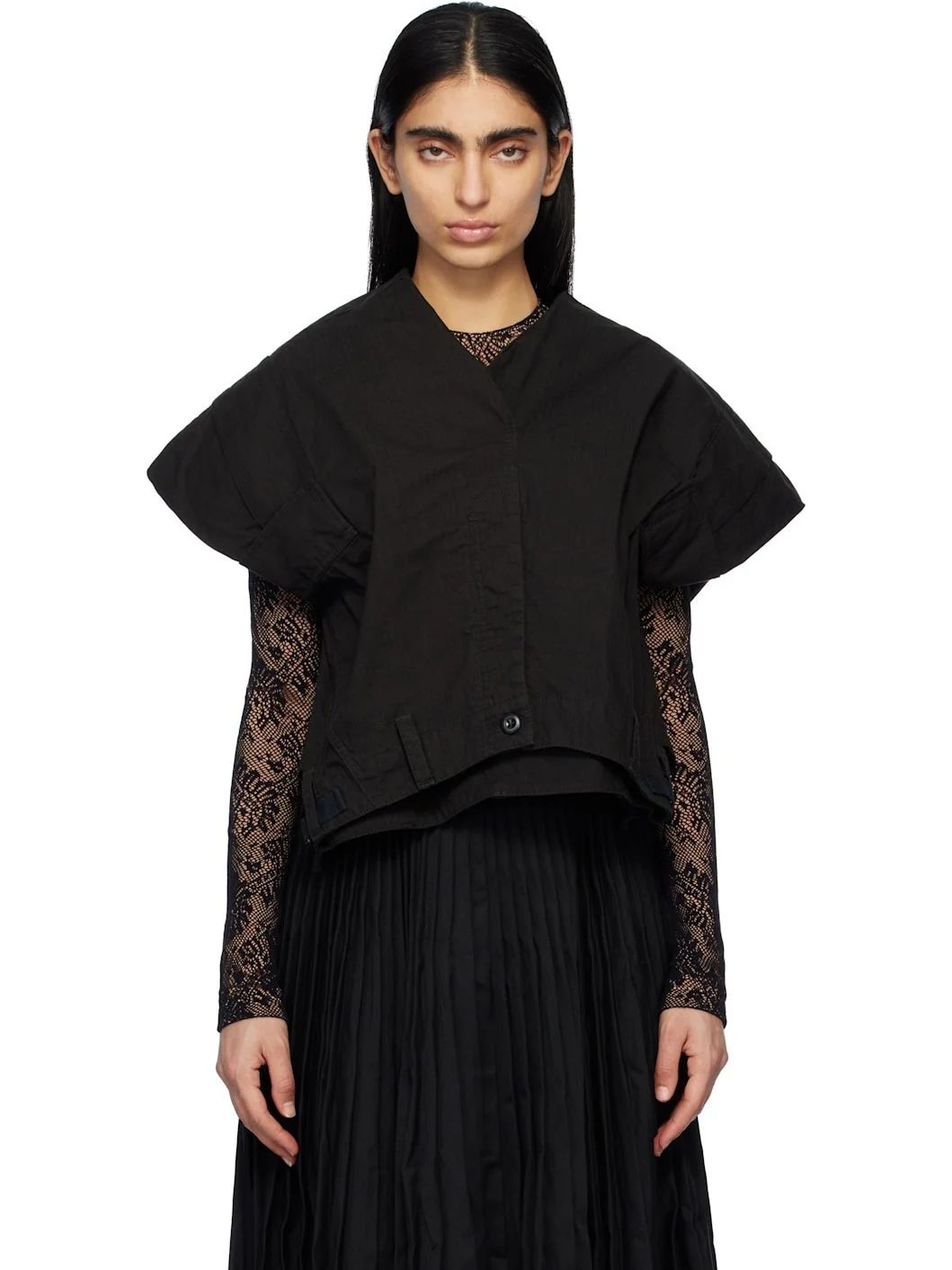 Cotton- and nylon-blend ripstop top. · Asymmetric layered construction · V-neck · Belt loops, cinch tabs, and button-fly at hem · Flap pocket at cap sleeves Supplier color: Black Body: 53% cotton, 47% polyamide. Lining: 100% cotton. Made in Italy 242342F110017