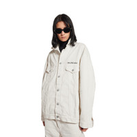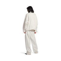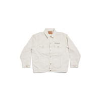 Denim Jacket Regular Fit in white denim PRODUCT DETAILS • Cotton denim • 7 button front • 2 buttoned pockets at chest • 2 slash pockets • Buttoned cuffs • Adjustable buttoning at waist • Balenciaga engraved flex buttons • Balenciaga logo emrboidered at chest • Made in Italy Main material: 100% cotton