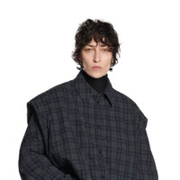 Detachable Sleeves Shirt Large Fit in grey and dark green light check flannel PRODUCT DETAILS • Light check flannel • This item is unisex • Large fit • Button-down collar • 7 snap button front • 1 patch pocket at chest • Detachable long-sleeved inner panel • Open at underarm • Snap cuffs • Rounded bottom • Balenciaga engraved buttons • Made in Italy • Dry cleaning Material: 100% cotton