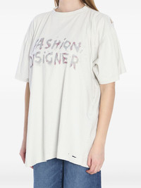 distressed cotton shirt Highlights - White - Crew neck - Drop shoulder - Short sleeves - Raw-cut hem Imported Composition Cotton 100% Washing instructions Read Manufacturer Guidelines