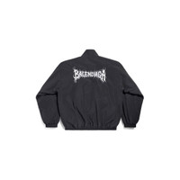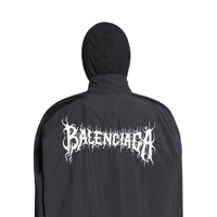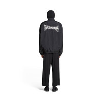 DIY Metal Tracksuit Jacket in black techno poplin PRODUCT DETAILS • Techno poplin • This item is unisex • Large fit • High neck • Dropped shoulders • Zipped front • 2 zipped slash pockets at front • Elasticated cuffs and waistline • DIY metal artwork embroidered at back • Made in Italy • Dry cleaning • Model is 190 cm / 6'3" and is wearing a size S Material: 52% cotton, 48% polyamide