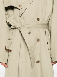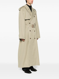 belted maxi trench coat Highlights - Beige - Cotton - Notched collar - Throat latch - Double-breasted button fastening - Epaulettes - Long raglan sleeves - Belted cuffs - Storm flap - Detachable waist belt - Belt loops - Two side button-fastening pockets - Checked lining - Internal button-fastening pockets - Buttoned central rear vent - Straight hem - Maxi - When buying this unisex item, keep in mind that it is graded in standard men's sizing. Made in Italy Composition Lining: Wool 100%, Cotton 100%, Cupro 100% Outer: Cotton 100% SIZE & FIT Model measurements Height 6 ft 2 in(1.87 m) Bust/Chest 37.79 in(96 cm) Hips 37.79 in(96 cm) Waist 30.31 in(77 cm) FittingInformation Designed for an oversized fit, offering additional room throughout The belt offers adjustability for fitted preferences Made from a heavyweight non-stretch fabric This piece fits true to size – take your usual size
