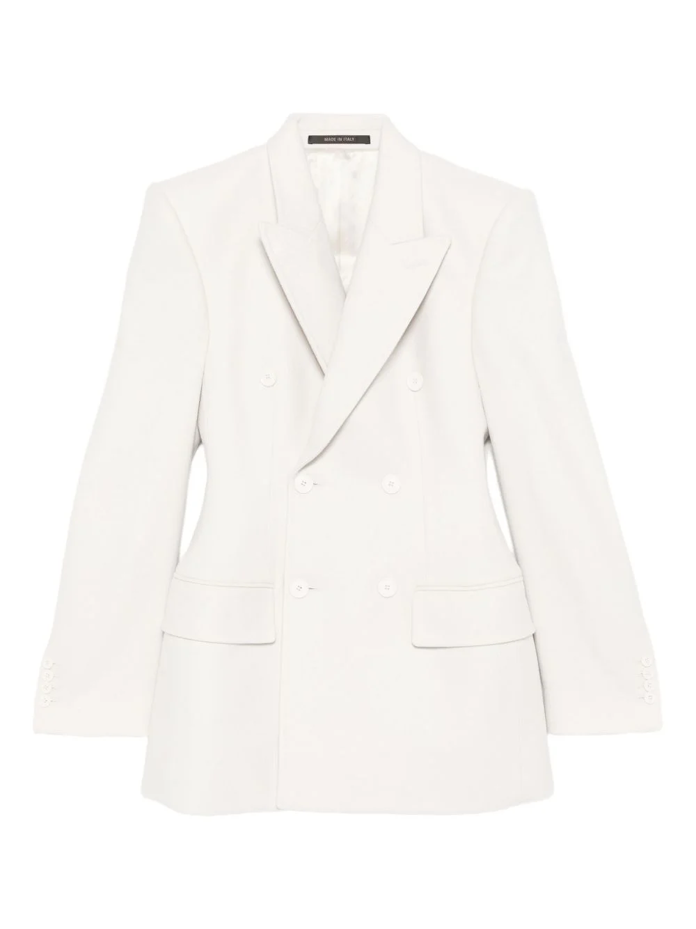 double-breasted hourglass blazer Highlights - Cream - Double-breasted - Peak lapels - Front flap pockets - Button fastening - Long sleeves Made in Italy Composition Outer: Cashmere 100% Lining: Cotton 100% SIZE & FIT Model measurements Height 5 ft 10 in(1.78 m) Bust/Chest 33.46 in(85 cm) Hips 36.22 in(92 cm) Waist 23.22 in(59 cm) Washing instructions Read Manufacturer Guidelines