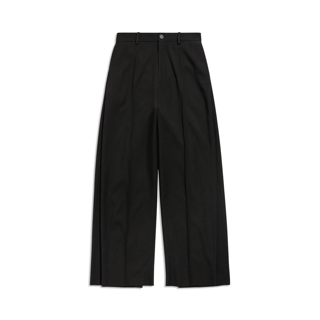 Double Front Pants in black dry wool twill are from looks 1 and 2 of Balenciaga's Winter 23 Collection. PRODUCT DETAILS • Dry wool twill • This item is unisex • Large fit • Double front effect, 1 side slit long panel attached • Mid-waist • Covered zip fly • 6 belt loops • 2 slash pockets • 1 buttoned pocket at back • Pleated leg • Made in Italy • Dry cleaning • The model is wearing a size S Material: 100% virgin wool