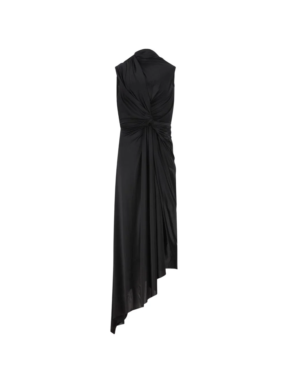 asymmetrical midi dress Highlights - Black - Draped detail - Asymmetrical hem - Sleeveless - Knot detail - Draped design Imported Composition Fabric 100% Washing instructions Read Manufacturer Guidelines
