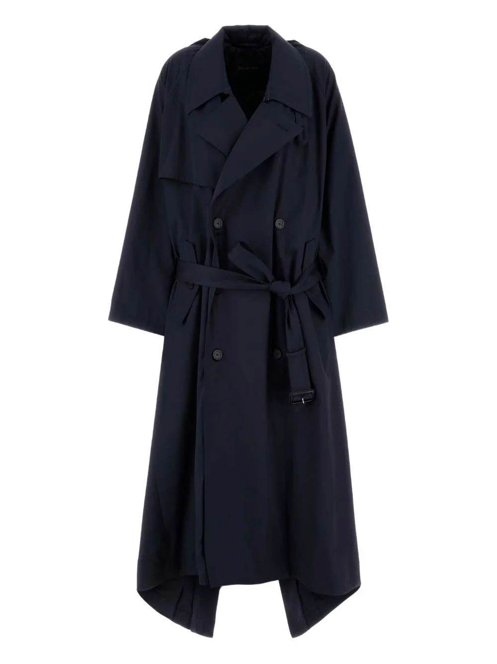 double-breasted belted trench coat Highlights - Dark navy - Cotton - Double-breasted closure - Belted waist - High-low hem - Back vent Made in Italy Composition Outer: Cotton 100% Lining: Cupro 100% Washing instructions Read Manufacturer Guidelines