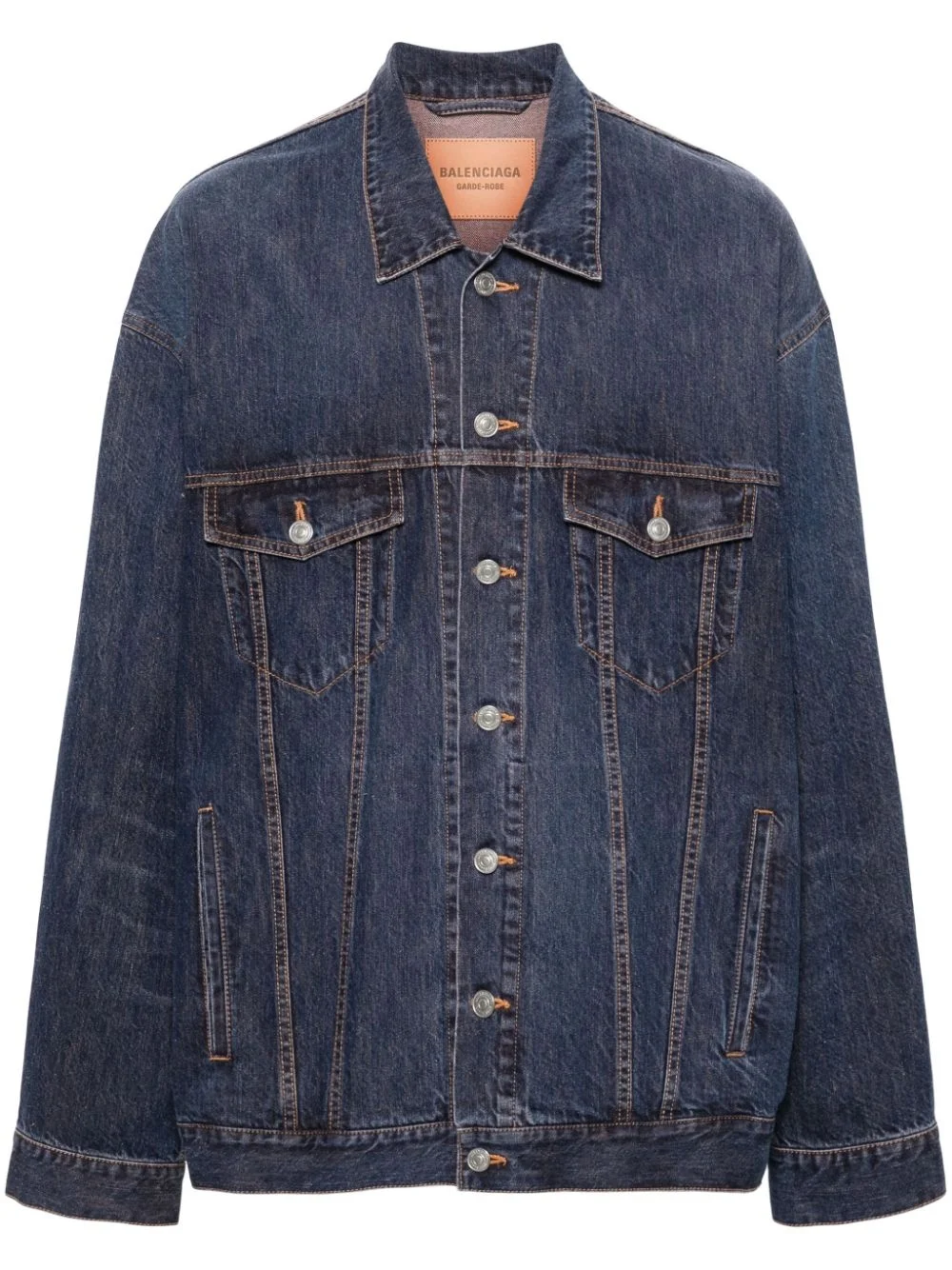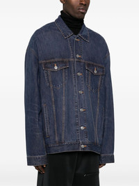denim jacket Highlights - Indigo blue - Cotton blend - Denim - Front button fastening - Contrast stitching - Classic collar - Drop shoulder - Long sleeves with buttoned cuffs - Two chest flap pockets - Two side welt pockets - Waist tabs - Straight hem - When buying this unisex item, keep in mind that it is graded in standard men's sizing. Imported Composition Outer: Cotton 61%, Silk 39% Lining: Cotton 100% SIZE & FIT Model measurements Height 6 ft 0 in(1.84 m) Bust/Chest 35.82 in(91 cm) Hips 37 in(94 cm) Waist 28.34 in(72 cm) FittingInformation This unisex piece is designed for an oversized fit whether you usually select women's or men's sizes Sturdy and hard-wearing, this denim piece offers no stretch