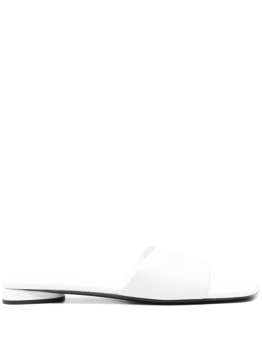Duty Free leather slides Highlights - White - Sheepskin - Embossed logo to the front - Square open toe - Branded leather insole - Slip-on style - Flat leather sole - We've partnered with good on you â an independent agency that rates how brands perform in relation to their impact on the planet, people and animals, with a multi-criteria rating simplified to a five points scale. in order to be awarded our conscious label, larger brands need to score a minimum of four out of five ('good'), while smaller brands must score at least three out of five ('it's a start'). - This item comes from a brand rated four out of five ('good') by good on you at the time it was added on farfetch. please note, this is a brand-level rating and does not guarantee that this product is made with conscious materials. - Learn more about what makes a product conscious on our conscious criteria page Made in Italy Composition Lining: Lamb Skin 100% Sole: Lamb Skin 100% Outer: Lamb Skin 100% SIZE & FIT Measurement HEEL 0.78 in(2 cm)