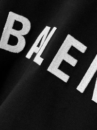 Balenciaga never under estimates the lasting appeal of a simple T-shirt. Embroidered with the logo in contrasting threads, this version is made from cotton-jersey for a relaxed fit and has a classic crewneck. Don't miss the white version in our edit. Size & Fit - 1 = UK 4-8/ US 0-4/ FR 32-36/ IT 36-40 - 2 = UK 10/ US 6/ FR 38/ IT 42 - 3 = UK 12/ US 8/ FR 40/ IT 44 - 4 = UK 14/ US 10/ FR 42/ IT 46 - 5 = UK 16/ US 12/ FR 44/ IT 48 - Fits true to size, take your normal size - Intended for a boxy fit, cut to be worn loose - Dropped shoulder seam - Mid-weight, slightly stretchy fabric - Model is 180cm/ 5'11" and is wearing the designer's size 1 Model measurements: - Bust: 81cm/ 32" - Waist: 63cm/ 25" - Hip: 91cm/ 36" Details & Care - Black cotton-jersey - Slip on - 100% cotton - Machine wash
