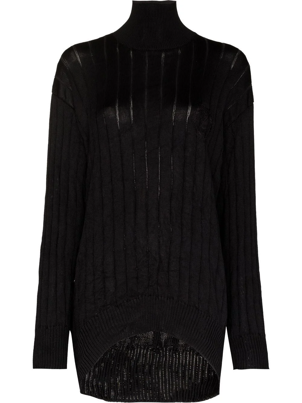 rib-knit jumper Expertly spun from silk in a semi-sheer construction, this rib-knit jumper from Balenciaga achieves wardrobe staple status due to its minimalist black hue. Made in Italy Composition Silk 100%, Polyester 100% SIZE & FIT Model measurements Height 5 ft 11 in(1.8 m) Bust/Chest 31.49 in(80 cm) Hips 36.41 in(92.5 cm) Waist 25.59 in(65 cm) FittingInformation This piece fits true to size. We recommend you get your regular size Cut for a loose fit Made with a mid-weight fabric