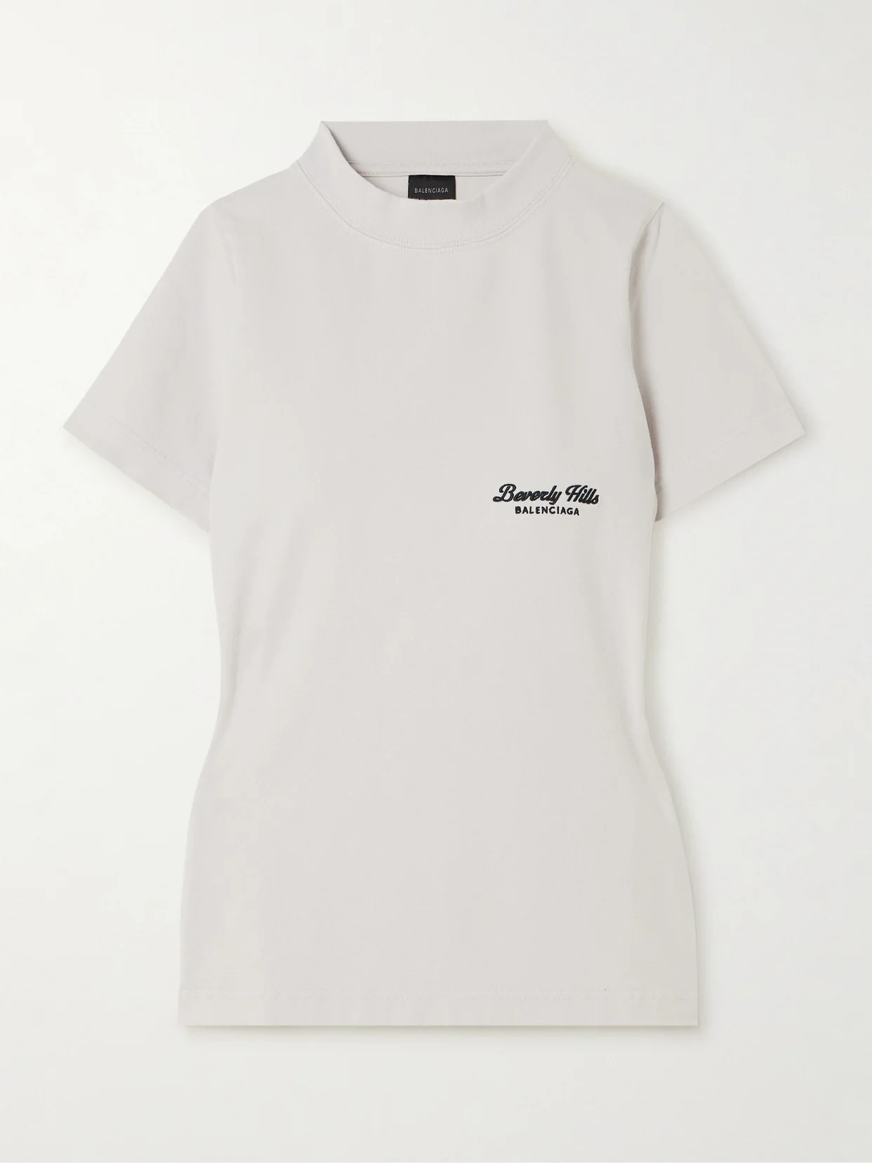Balenciaga's approach to proportion and fit is always considered - countering the label's go-to bagginess, this T-shirt's ultra fitted. It's embroidered at the front and made from stretch-cotton that feels smooth and supple.