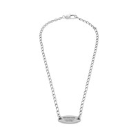 Everyday Necklace in antique silver brass PRODUCT DETAILS • Dimensions: L16,54 x H8,27 x W0,08 inch • Brass • Necklace • Balenciaga and 10 AV George V 75008 Paris logo engraved on the front of the plate • BB logo engraved on the back of the plate • Adjustable chain • Clasp closure • Made in Italy • This item is nickel-free, lead-free, and hypoallergenic Material: brass