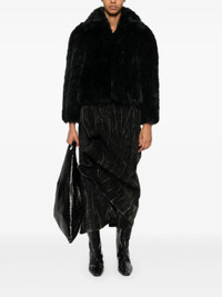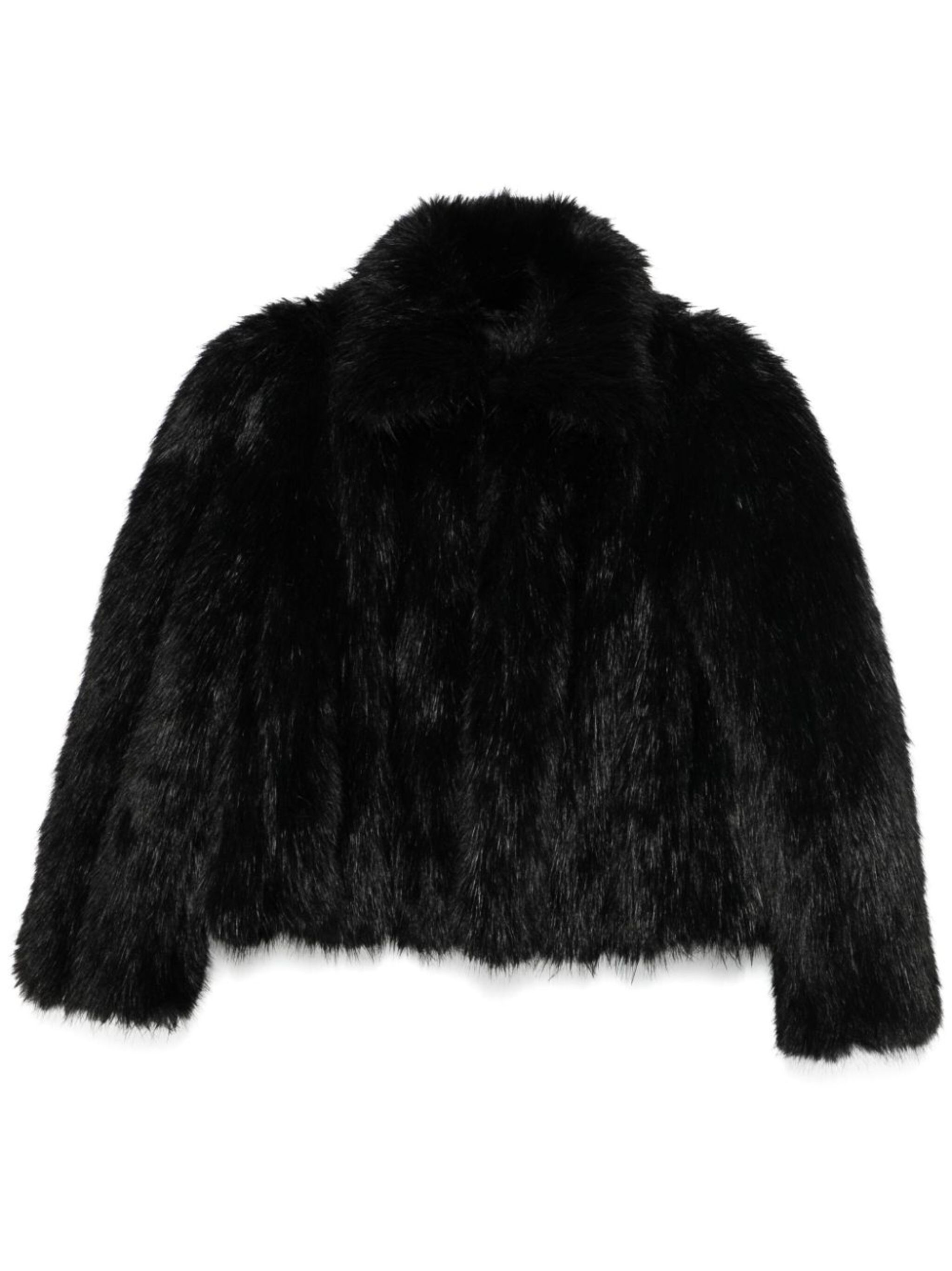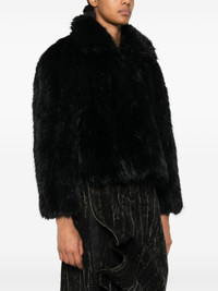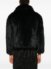black faux-fur design front hook and eye fastening wide spread collar long sleeves full lining scallop hem We've partnered with Good On You — an independent agency that rates how brands perform in relation to their impact on the planet, people and animals, with a multi-criteria rating simplified to a five points scale. In order to be awarded our conscious label, larger brands need to score a minimum of four out of five ('Good'), while smaller brands must score at least three out of five ('It's a start'). This item comes from a brand rated five out of five ('Great') by Good on You at the time it was added on FARFETCH. Please note, this is a brand-level rating and does not guarantee that this product is made with conscious materials. Learn more about what makes a product Conscious on our Conscious Criteria page Size & Fit Model Measurements: Height: 1.77 m Bust/Chest: 82.0 cm Hips: 94.0 cm Waist: 64.0 cm Model wears size 36 Fabric and Care Designer Style ID: 790841TPQ23 Designer Colour: 1000 BLACK Composition: Outer: Polyester 100%; Lining: Polyester 100%, Viscose 100%, Cotton 100%, Polylactic acid (pla) 40%, Silk 60% Washing instructions: Dry Clean Only Made in Italy